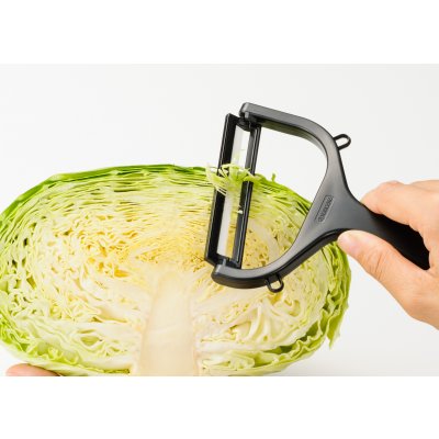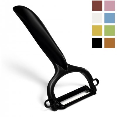 Este pelador en Y horizontal es la herramienta esencial para todos los días en la cocina y cuenta con una hoja de cerámica ultra afilada de un solo lado hecha con el material de zirconia patentado de Kyocera producido en Japón y se mantiene afilada al menos 10 veces más que los peladores tradicionales. El pelador es liviano, no corrosivo y excelente para cualquier tarea repetitiva de pelado. Disponible en varios colores.